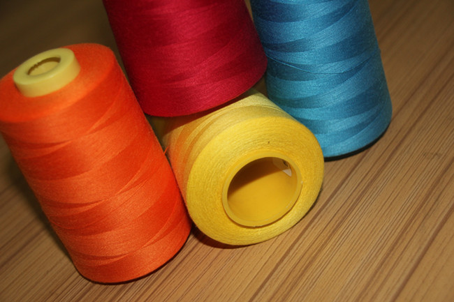 we use Yizheng brand polyester staple fiber make into polyester yarn , then use Longsheng Eco-Friendly dyes dye the yarn. When we make the sewing thread we use imported silicon oil . All the material we used are the best one .So the thread is smooth ,high tenacity and Low shrinkage .